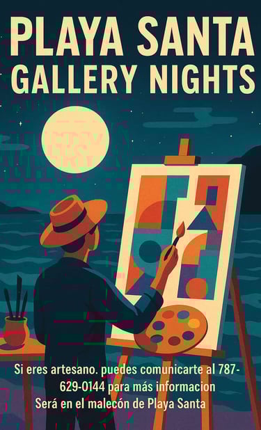#PlayaSantaGalleryNights #Guánica #ArteLocal #EventosPR #CaribeCreativo #MusicaEnVivo #ArtesanosDePuertoRico